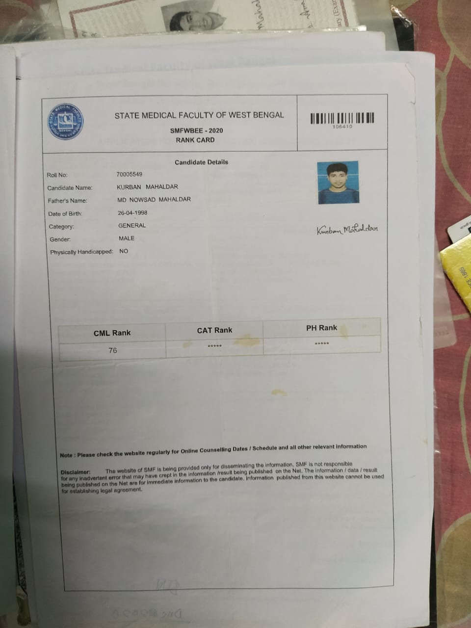 Case Story: Kurban Mahaldar is studying Para Medical ( Critical care Technician) at National Medical College ( Chittaranjan ). He badly needs our financial support to help him pay his Annual College Tuition fee.