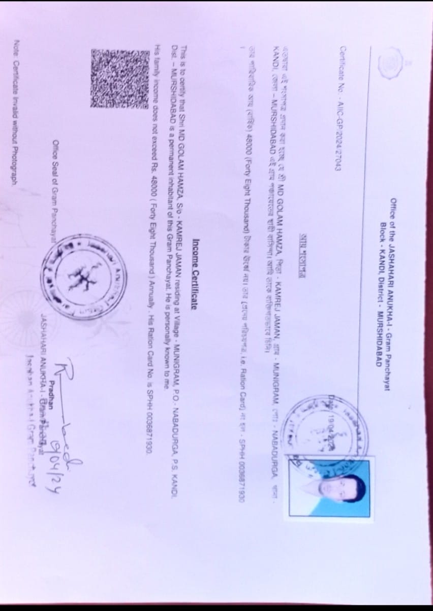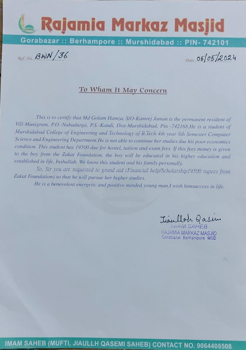 I am Md Golam Hamza, the son of Kamrej Jaman, hailing from the humble village of Munigram, Murshidabad. I humbly come before you to share my story and seek your gracious assistance.