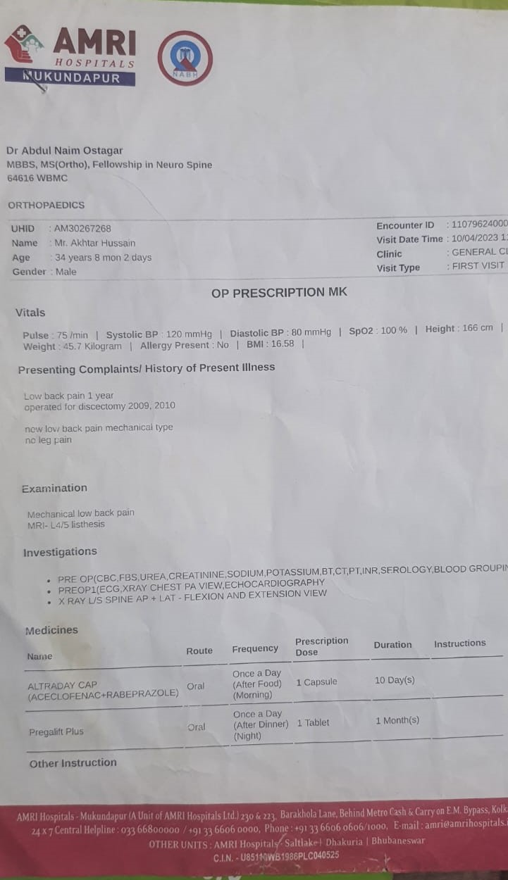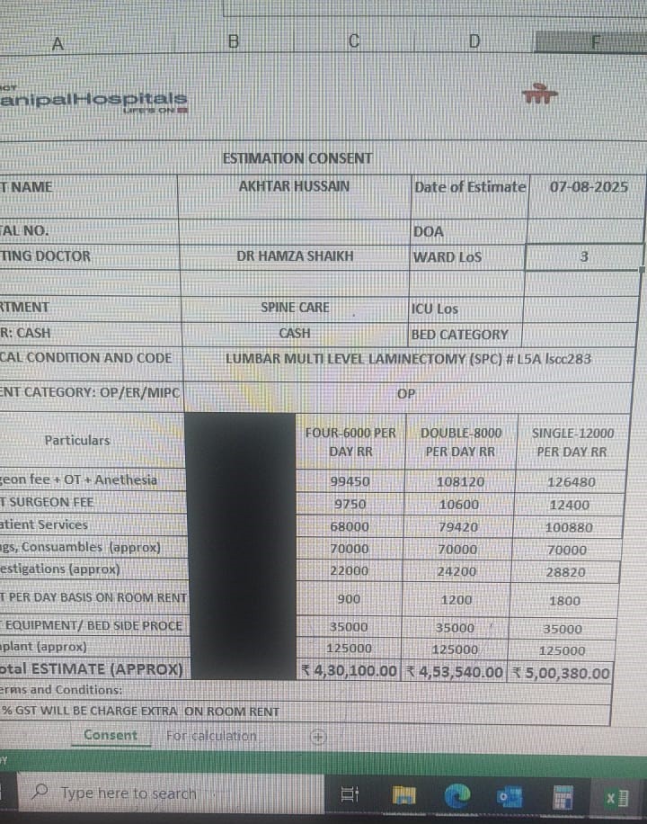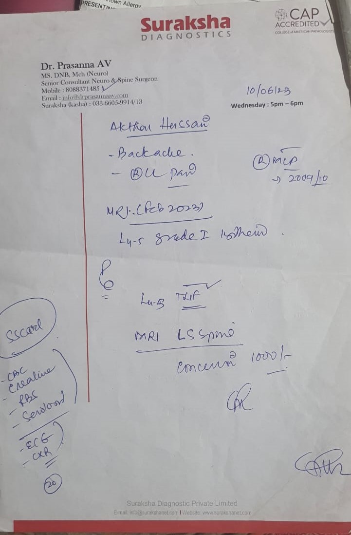 Currently he needs a surgery to the injured spine. He tried in Government Hospital but the mentioned surgery can not be performed there.